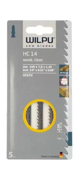 Полотно HC14 от WILPU предназначено для чистой и быстрой резки дерева и пластиковых материалов. Изготовлено из высококачественной инструментальной стали (HCS/CV), что гарантирует оптимальную производительность и долговечность. Зубья с перекрестной насечкой и шагом 4,0 мм обеспечивают эффективную резку материалов толщиной от 10 до 45 мм.