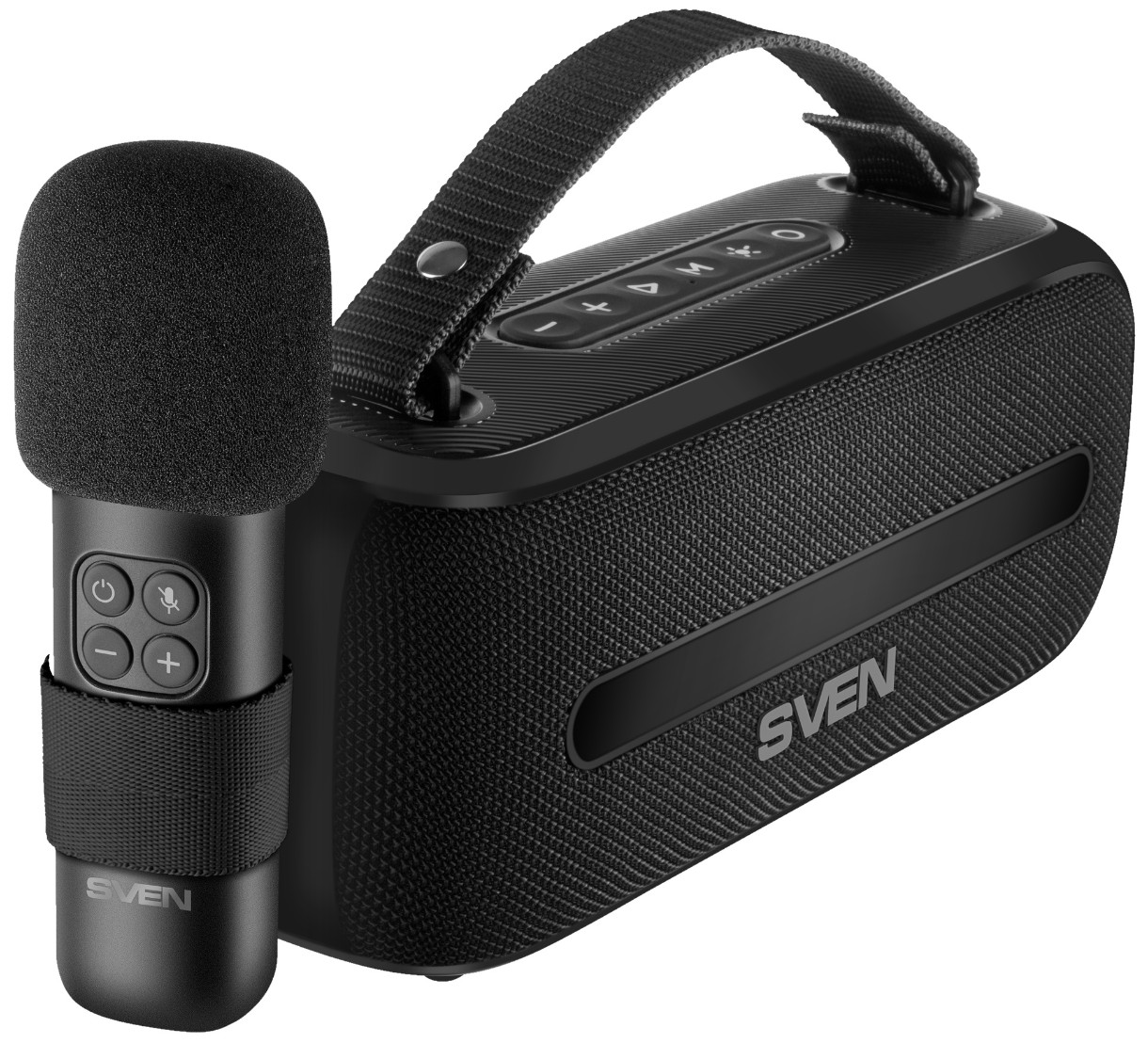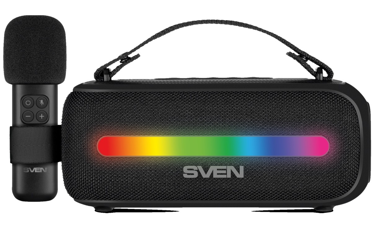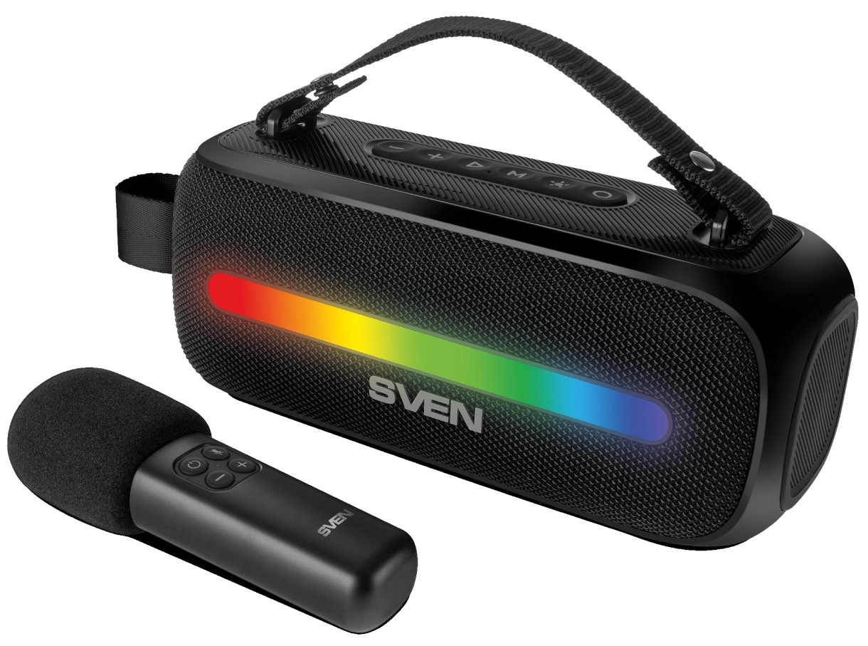 В комплекте с акустикой поставляется беспроводной микрофон с регулятором громкости, превращающий ее в портативную караоке-станцию, которая позволит спеть любимую песню, где бы вы не оказались.