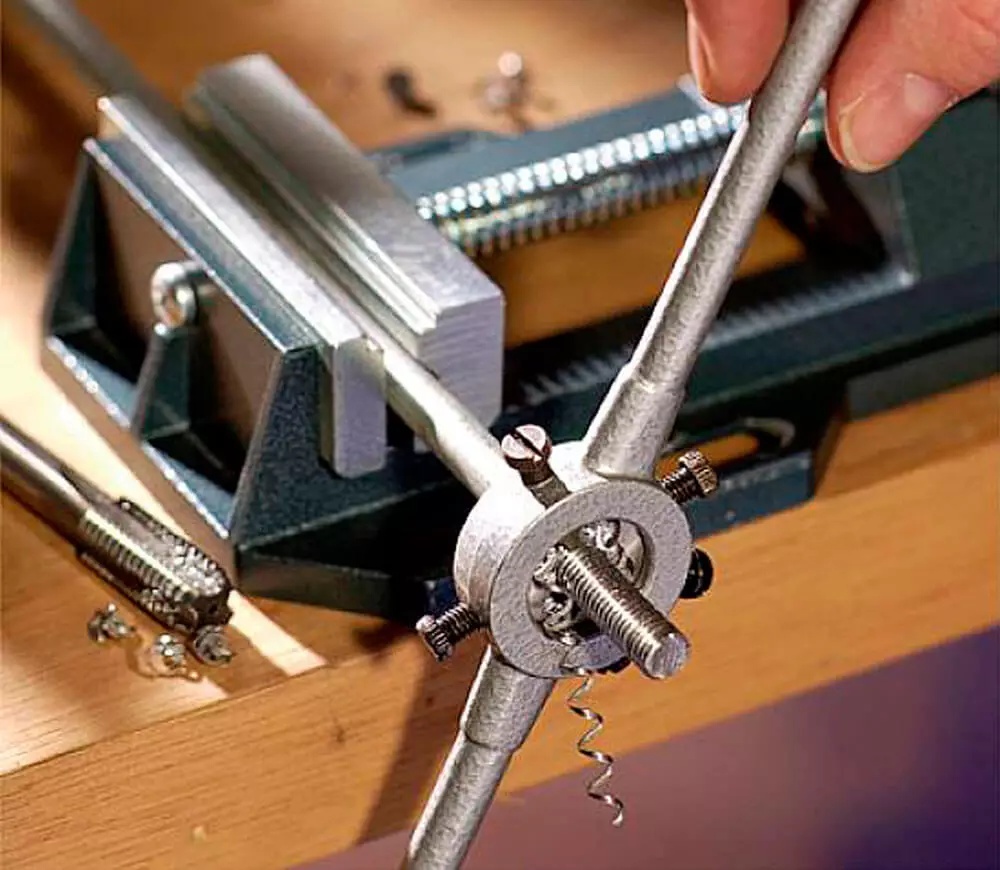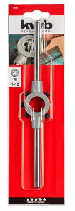 Плашкодержатель KWB K444930 имеет корпус из цинкового литья под давлением, для зажима закрытых и разрезных плашек 25 x 9 мм, ручка отвинчивается, для ручного использования.