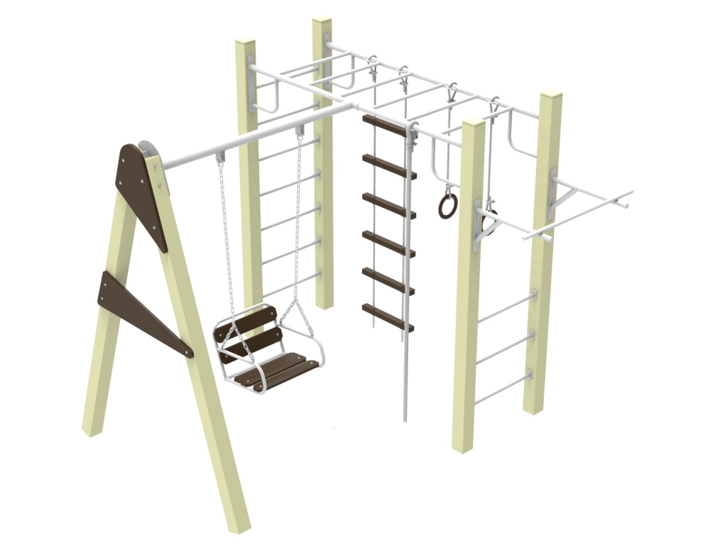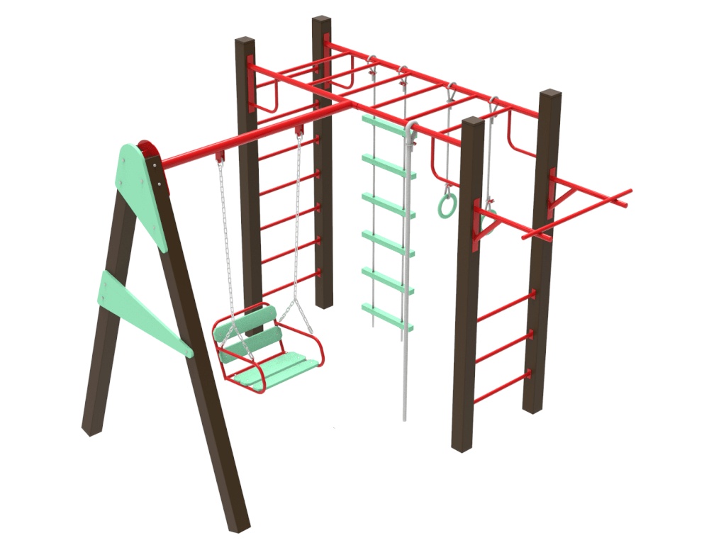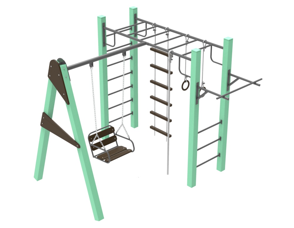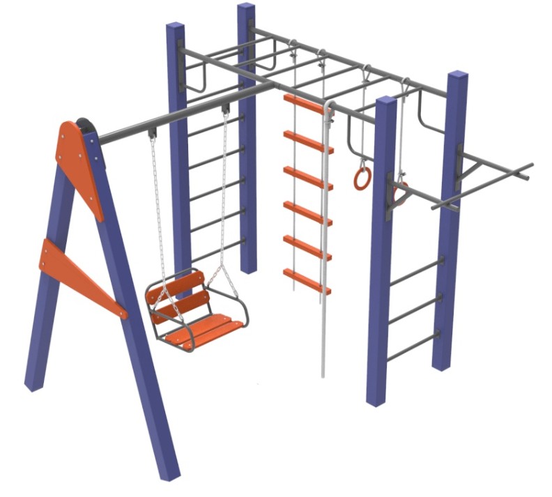 Элемент спортивного оборудования для детских и спортивных площадок. Спортивный комплекс "Всё сразу" рассчитан на использование детьми в возрасте от 12 до 17 лет. Оборудование предназначено для занятий спортом на открытом воздухе.