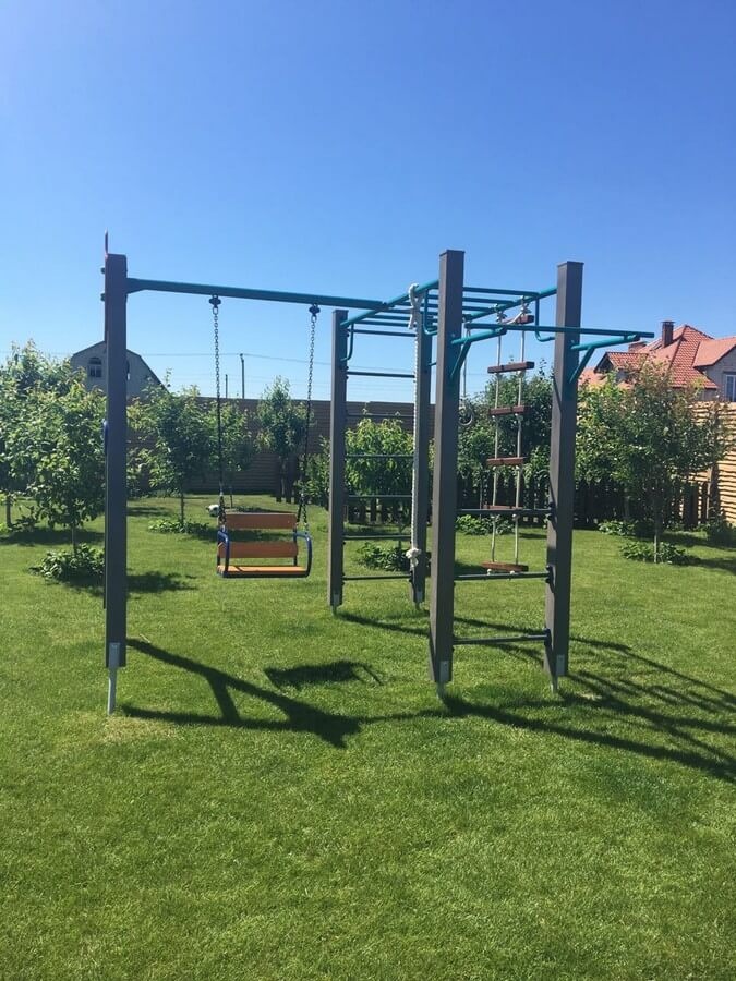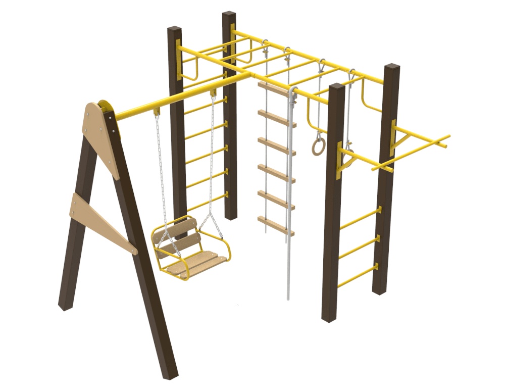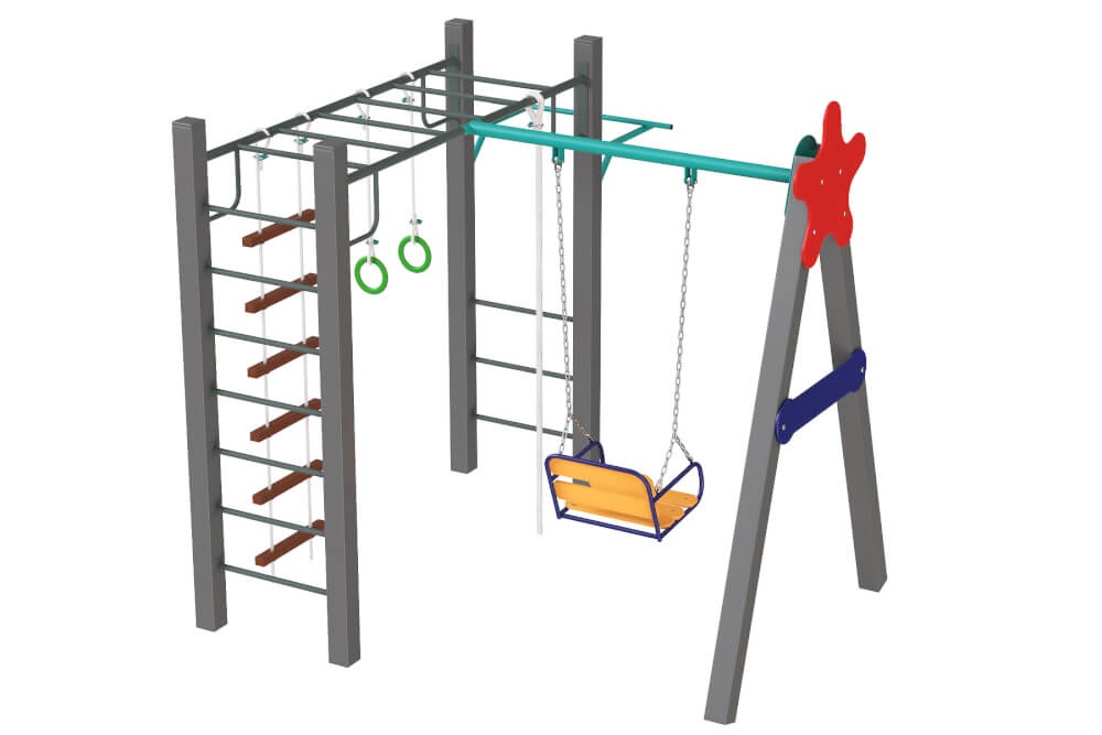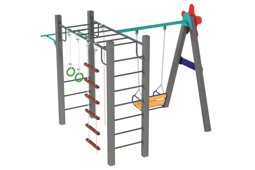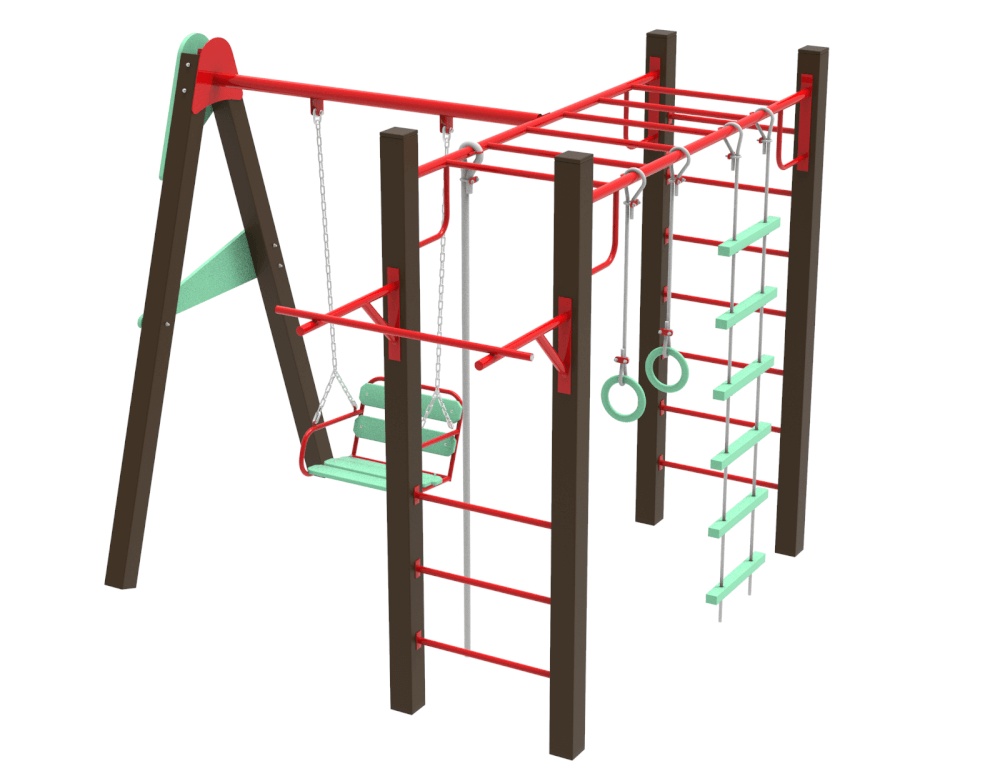 Элемент спортивного оборудования для детских и спортивных площадок. Спортивный комплекс "Всё сразу" рассчитан на использование детьми в возрасте от 12 до 17 лет. Оборудование предназначено для занятий спортом на открытом воздухе.