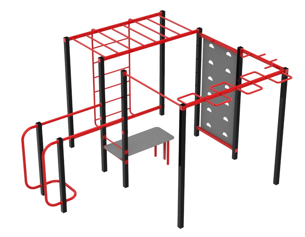 Комплекс для Воркаута помогает развивать ловкость, силу хвата, прорабатывать все группы мышц. Оптимальное сочетание разных элементов обеспечивает эффективные физические нагрузки. Спортивный комплекс предназначен для занятий физкультурой на свежем воздухе как взрослых, так и детей после 14 лет.