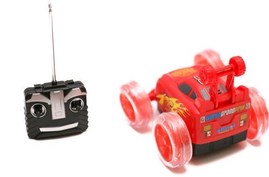Автомобиль включается кнопкой, после чего он начинает светиться разнообразными огнями и раздаются веселые мелодии. Автомобиль управляется с помощью пульта дистанционного управления. Машина движется вперед или назад, поворачивается влево или вправо (на 360 градусов), делая впечатляющие повороты, когда вы нажимаете соответствующие кнопки на пульте дистанционного управления. Длина автомобиля составляет около 14 см, а высота - около 12 см.