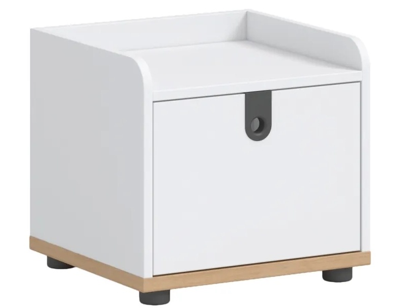 Прикроватная тумбочка Newjoy SOLID впечатляет своим вместительным ящиком и простым, элегантным дизайном. Белый комод с деревянным основанием натурального цвета и черными акцентами на ручках и ножках гармонично впишется в любую спальню. Практичный бортик с трех сторон полки предотвращает падение предметов.