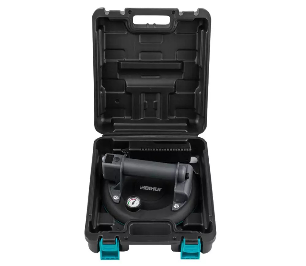 Присоска BIHUI с АВТО оснащена встроенным электрическим насосом, датчиком давления, дисплеем и манометром давления для визуального контроля. Датчик давления анализирует силу разрежения воздуха и автоматически включает насос, когда требуется восстановить необходимые параметры вакуума (автоматическая подкачка). Всасывающего усилия вакуумного насоса достаточно для удержания грузов массой до 140 кг на отрыв и до 100кг на соскальзывание.