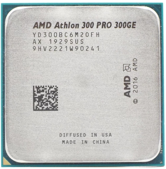 AMD Athlon PRO 300GE — 2-ядерный процессор с тактовой частотой 3400 MHz и кэшем 3-го уровня 4096 KB. Процессор предназначен для настольных компьютеров, разъем — Socket AM4. Имеет встроенный контроллер оперативной памяти (2 канала, DDR4-2933) и контроллер PCI Express 3.0 (количество линий — 8).