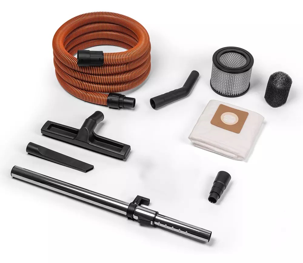 - Шланг длиной 4 метра и телескопическая стальная штанга позволяют собирать мусор в труднодоступных местах.