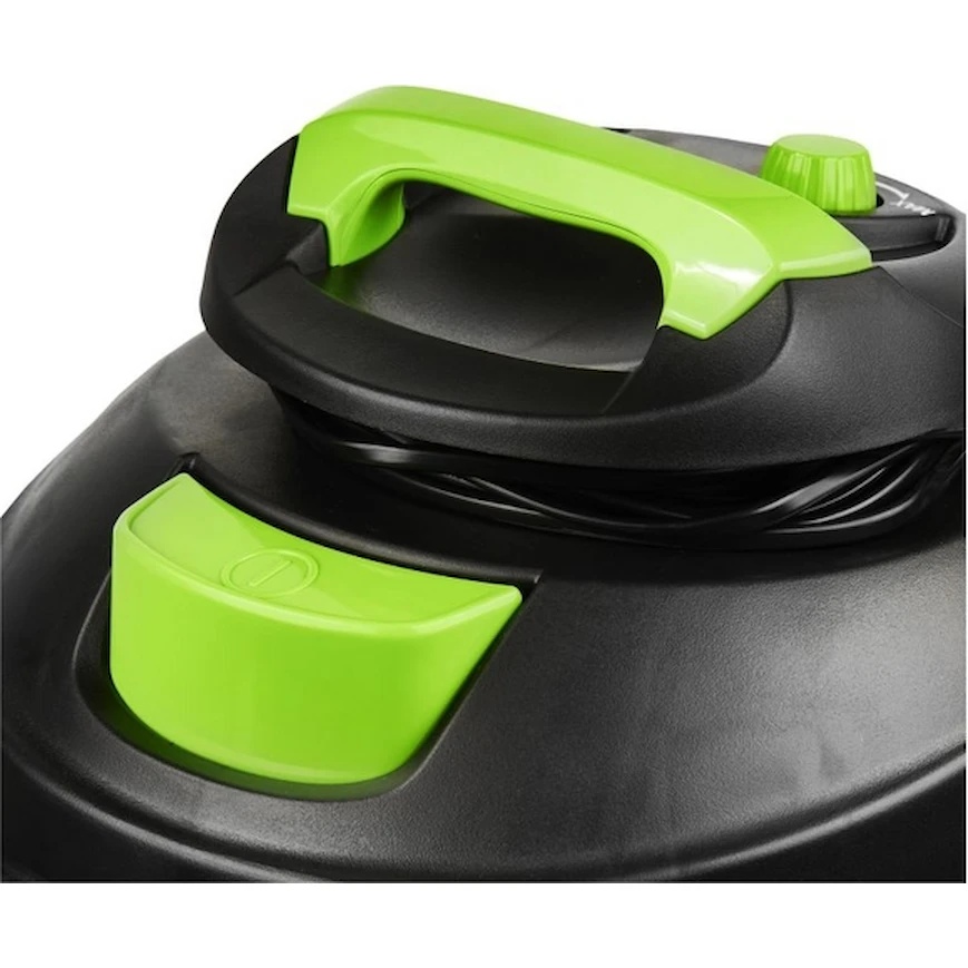 Циклонная технология собирает мусор вихревым движением в контейнер. Конструкция без мешка обеспечивает повышенную гигиеничность, стабильную мощность всасывания и снижение эксплуатационных расходов. Колеса позволяют легко транспортировать и хранить пылесос, а продуманная конструкция позволяет удобно хранить входящие в комплект насадку для щелей и щётку.