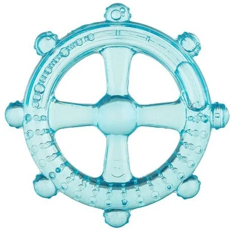 Симпатичный синий прорезыватель в форме руля, наполненный прохладной водой. Он имеет вставки, которые принесут облегчение раздраженным деснам вашего ребенка. а благодаря большому отверстию посередине его удобно держать маленьким ручкам.