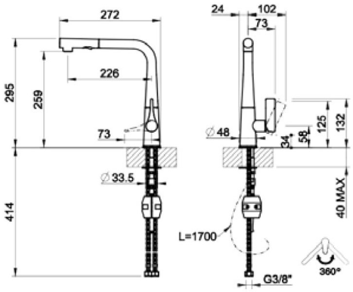 Угол поворота излива360 °