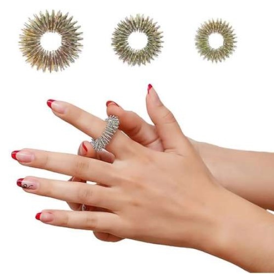 Набор пружин (кольца 3шт) Набор пружинных массажеров «Cу-джок» для пальцев Массажеры пружинные в наборе для Су-джок — терапии: кольца (2,5 см, 3 см, 3,5 см). Самый маленький массажер предназначен для мизинца, средние и большие массажеры — для указательного, среднего, безымянного и большого пальцев. Правильно подобранный массажер не должен сильно пережимать палец или легко сниматься с него. Проведение массажа не требует никаких особых знаний и усилий, его проводят руками в любое свободное от работы время. Эластичные кольца особенно эффективны для лечения больных с патологией нервной, сердечно-сосудистой, пищеварительной систем, с заболеваниями опорно-двигательного аппарата. Занятия с пружинными массажерами очень полезны для детей. Массаж пальцев развивает мануальные способности рук, способствует быстрому усвоению навыков письма, развивает речь и концентрирует внимание у дошкольников и младших школьников. Рекомендуется проводить массаж пальцев после напряженной работы руками, особенно музыкантам, врачам, спортсменам, программистам, после подъемов тяжестей, переохлаждений рук.