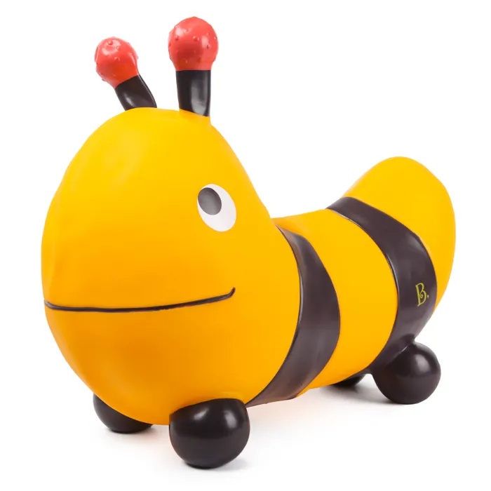 Баунсер Бамбл Би, наполняемый воздухом, в форме шмеля, с двумя удобными усиками-ручками! Эта игрушка-попрыгунчик (надувной батут) BUMBLE BEE от Battat мягкая и идеального размера для малышей. Усики, которые легко взять в руки, и четыре устойчивые ножки помогают сохранять равновесие. Отличный способ для детей оставаться активным и улучшать свои моторные навыки .
