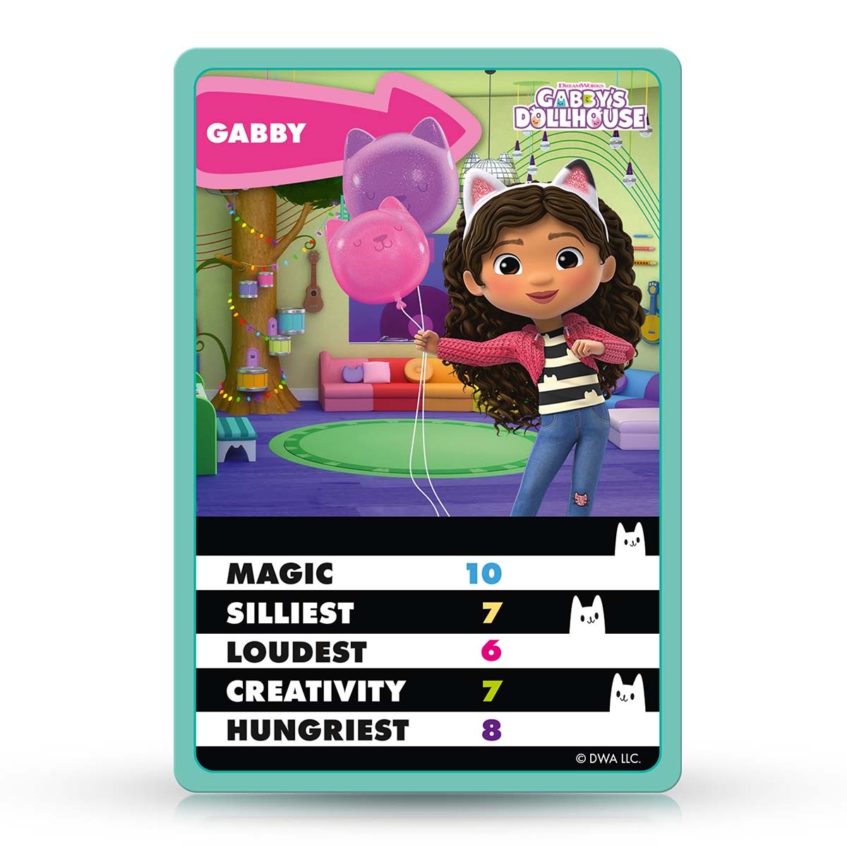 В игре представлены 12 персонажей, включая Лули-Лу, Карлиту, Фею-Кошку и Пэнди Поза. Игроки сравнивают характеристики персонажей, чтобы победить — например, кто самый громкий, самый креативный или самый голодный. Узнавайте, кто самый волшебный, и находите любимые локации из мультфильма, такие как Сказочный сад или Игровая комната.