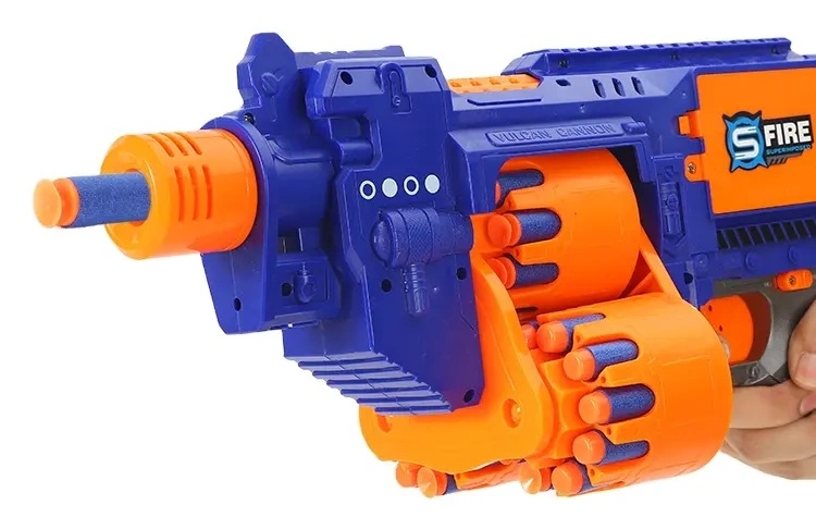 Автомат синий на батарейках с мягкими пулями - G2A - это 30-зарядный бластер на батарейках с тремя барабанами.