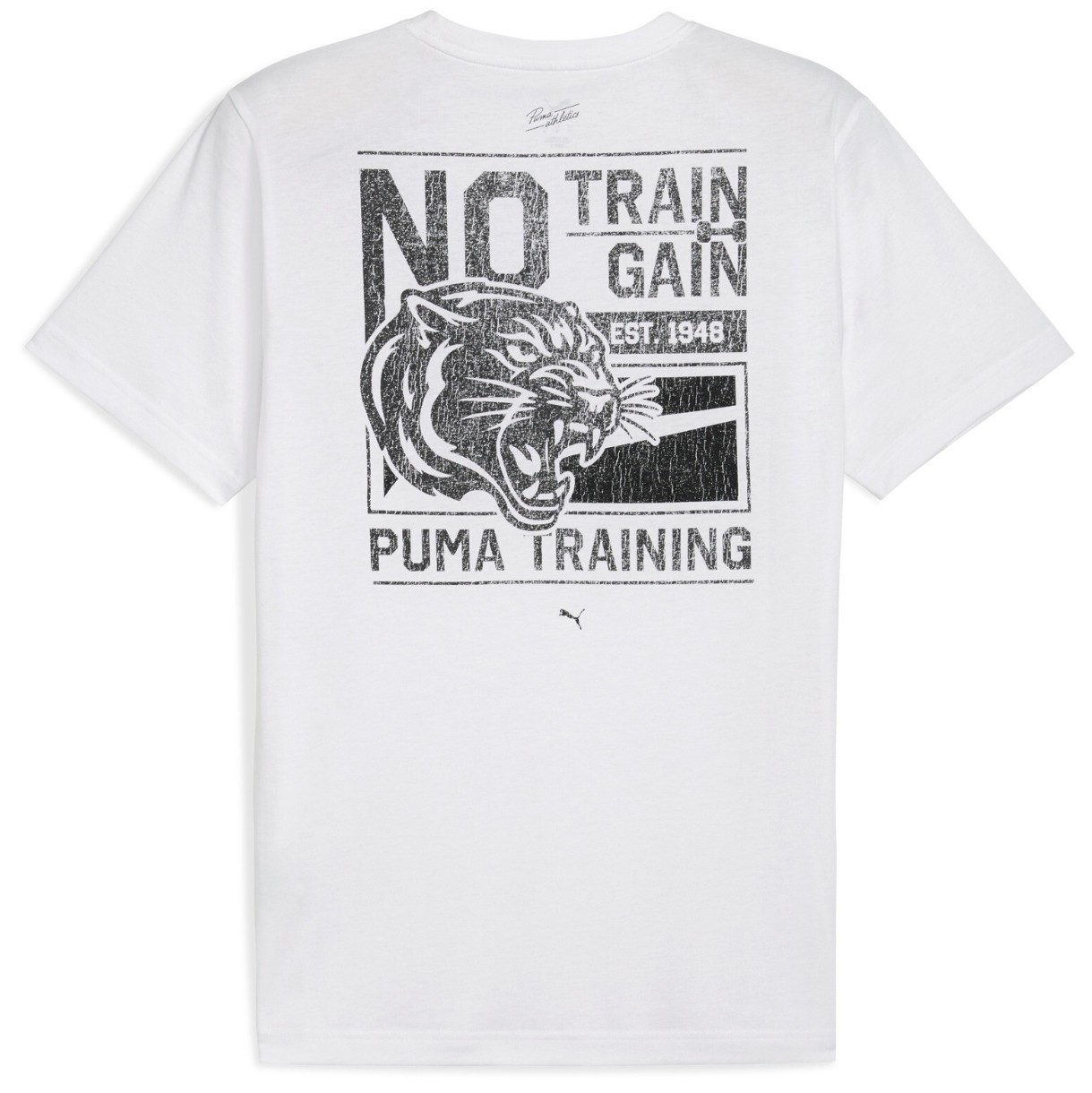 Классический крой и круглый вырез делают эту модель универсальной: она легко сочетается с любыми спортивными или повседневными образами. Акцентный графический принт на спине добавляет стилю индивидуальности, а лаконичный логотип Puma Cat на груди подчёркивает фирменное качество бренда.