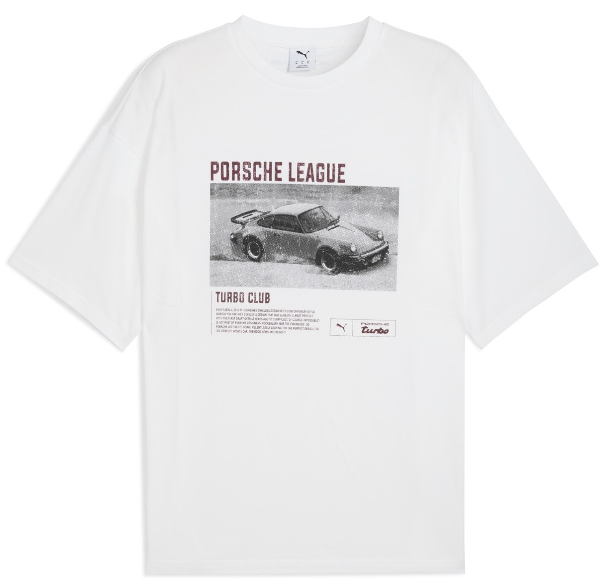 Свободный крой подчёркивает непринуждённость образа, а круглый вырез в рубчик добавляет удобства при носке. Главный визуальный акцент - графический принт Porsche League Turbo Club на груди, выполненный в лучших традициях гоночного стиля. Надпись PORSCHE на спине говорит сама за себя: Вы выбираете легенду, узнаваемую с первого взгляда.
