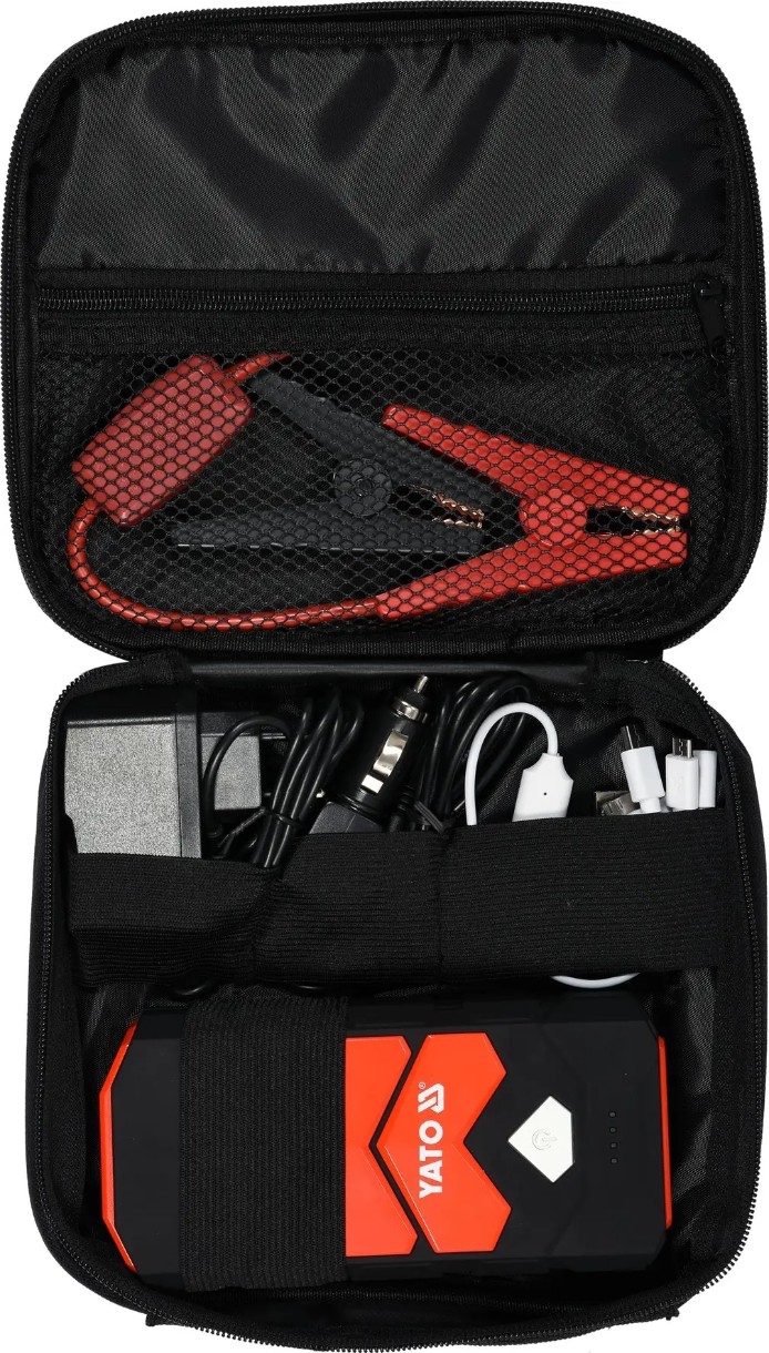 Компактное портативное устройство YATO YT-83081 емкостью 9000 мАч для аварийного запуска автомобилей и питания портативных устройств.
