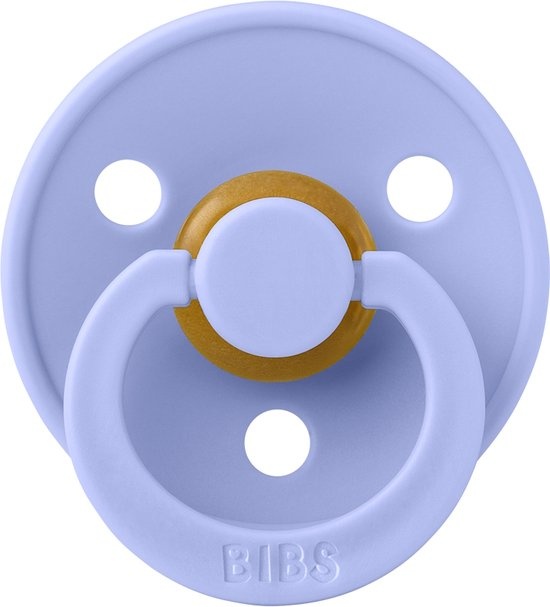 Соска Bibs из коллекции Color имеет круглую внешнюю форму с 3 отверстиями, которые обеспечивают циркуляцию воздуха и предотвращают раздражение вокруг рта ребенка. Кольцо вокруг пустышки круглое и украшено гравировкой BIBS.