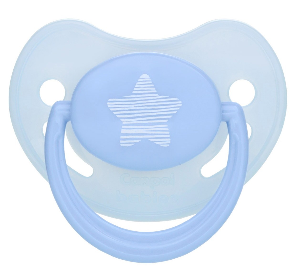 Пустышка Canpol babies с силиконовой соской ортодонтической формы, хорошо вентилируемая.