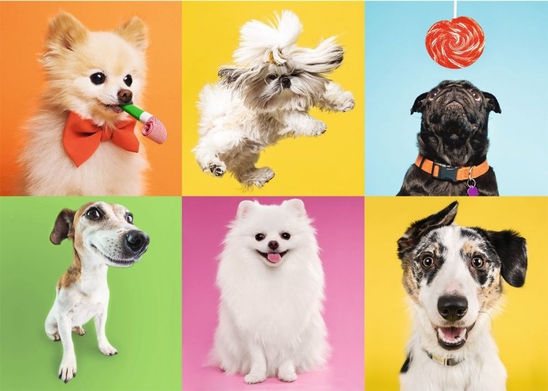 Пазлы на 500 элементов с фотографиями шести забавных собачек различных пород и раскрасок, изображенных в виде коллажа. В сложенном виде мы получим картинку размером 48х34 см., которая будет прекрасным подарком для поклонников животных и может стать отличным декором для стен Вашего дома. Высокое качество, насыщенность цветов и безопасность при сборке пазлов обеспечивает специальный каландрированный картон, который отражает свет и покрыт экологическими красками.