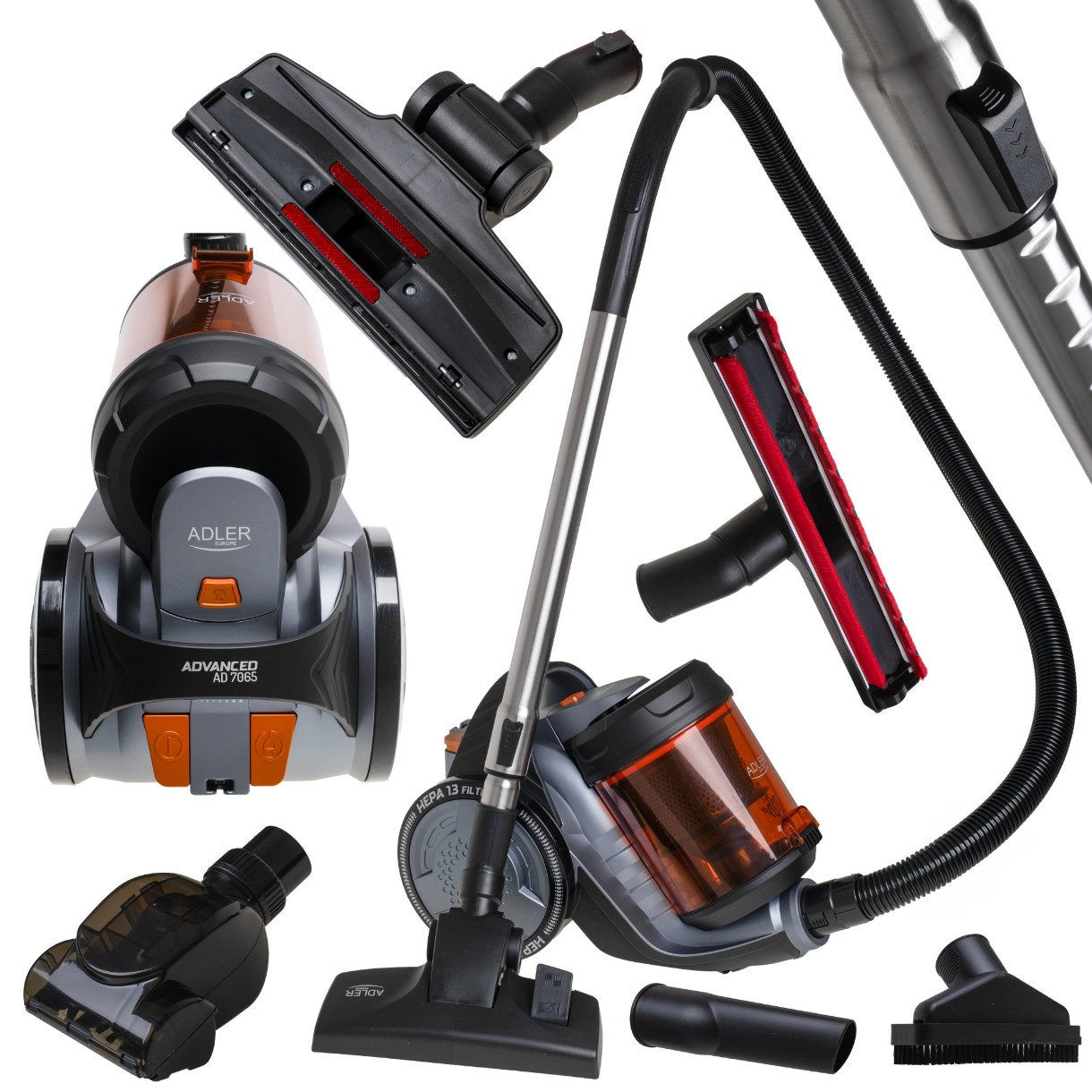 Циклонный пылесос без мешка Adler AD-7065 — это универсальное решение для ежедневной уборки твердых полов, ковров, диванов, автомобилей и труднодоступных уголков. Его компактный дизайн экономит место, а мощное всасывание до 17 000 Па и максимальный воздушный поток 27 л/с обеспечивают эффективное удаление грязи и пыли. Технология циклонной фильтрации и трехступенчатая система с предварительным фильтром, фильтром F9 и HEPA 13 улавливают до 99,95% частиц размером более 0,3 нм, а моющиеся фильтры и съемный пылесборник на 1,6 л упрощают обслуживание. Плавная регулировка мощности всасывания и удобная регулировка воздушного потока позволяют адаптировать работу под разные задачи. Пылесос оснащен длинным 7-метровым сетевым шнуром с автоматической смоткой, функцией парковки, ручкой для переноски и мягкими ABS-колесами для защиты пола. В комплект входят многофункциональная щетка для твердых полов и ковров, мини-турбощетка, щетка для паркета, универсальная щетка для обивки 2-в-1, щелевая насадка, телескопическая трубка и держатель для аксессуаров. Adler AD-7065 сочетает компактность, удобство и высокую производительность для идеальной чистоты дома.