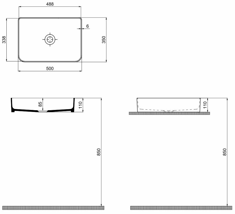 Умывальник QuarterBath Rapid Line 500x110x350 (114332)