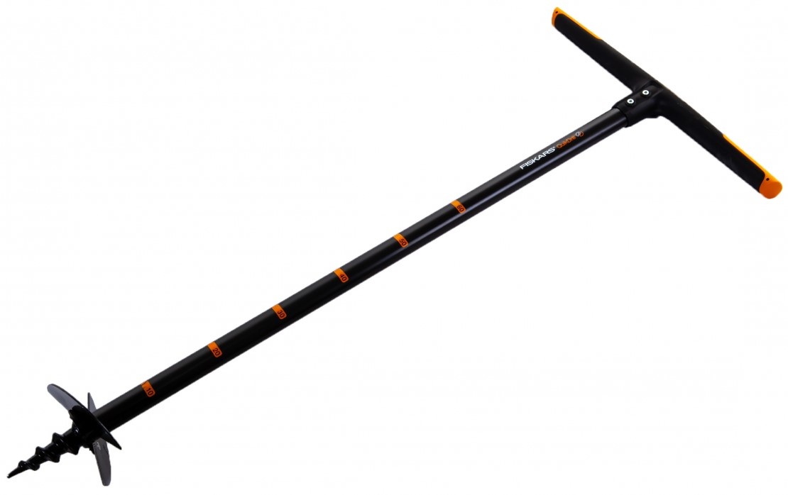 Садовые буры Fiskars QuikDrill™ отошли от традиционной винтовой конструкции в пользу двух заостренных лезвий, расположенных под оптимальным углом. Такое решение позволяет вскопать твердую почву и предотвращает застревание бура. Садовый бур оснащен сошником, который может иметь три разных диаметра: 100, 150 и 200 мм за счет сменных взаимозаменяемых лезвий. Упрощает работу и мерная шкала с интервалом 10 см, нанесенная на рукоятке.