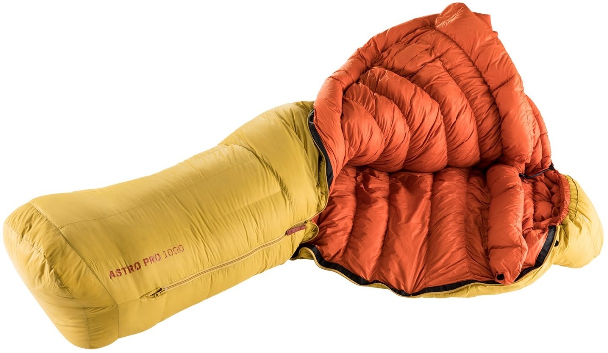 Deuter Astro Pro 1000 EL — пуховой спальный мешок имеет чрезвычайно продуманную конструкцию, в которой используется пуховый наполнитель плотностью 650 и соотношение пух/перо 90/10. Благодаря этому он характеризуется сенсационным соотношением теплоизоляции и веса. Натуральные перья, использованные в этой модели, защищают от холода, позволяя вам крепко спать и восстанавливать силы для следующего дня. Важно отметить, что натуральный наполнитель этого спального мешка имеет сертификат RDS, который доказывает, что с животными, от которых он был получен, обращались гуманно. Перьевое наполнение размещено в специальных трапециевидных камерах. Это обеспечивает хорошее распределение и предотвращает образование холодных зон.