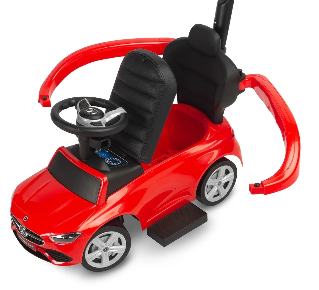 Машинка-катанка от Caretero Mercedes C-CLASS — это стильная и безопасная игрушка, которая станет незаменимым спутником для вашего малыша с 12 до 36 месяцев. Это транспортное средство, способное расти вместе с ребенком, предлагая два режима использования: в качестве толкателя, которым управляют родители, и после демонтажа ручки и защитного барьера — как классическая машинка для детей старшего возраста.