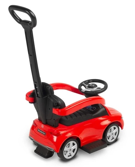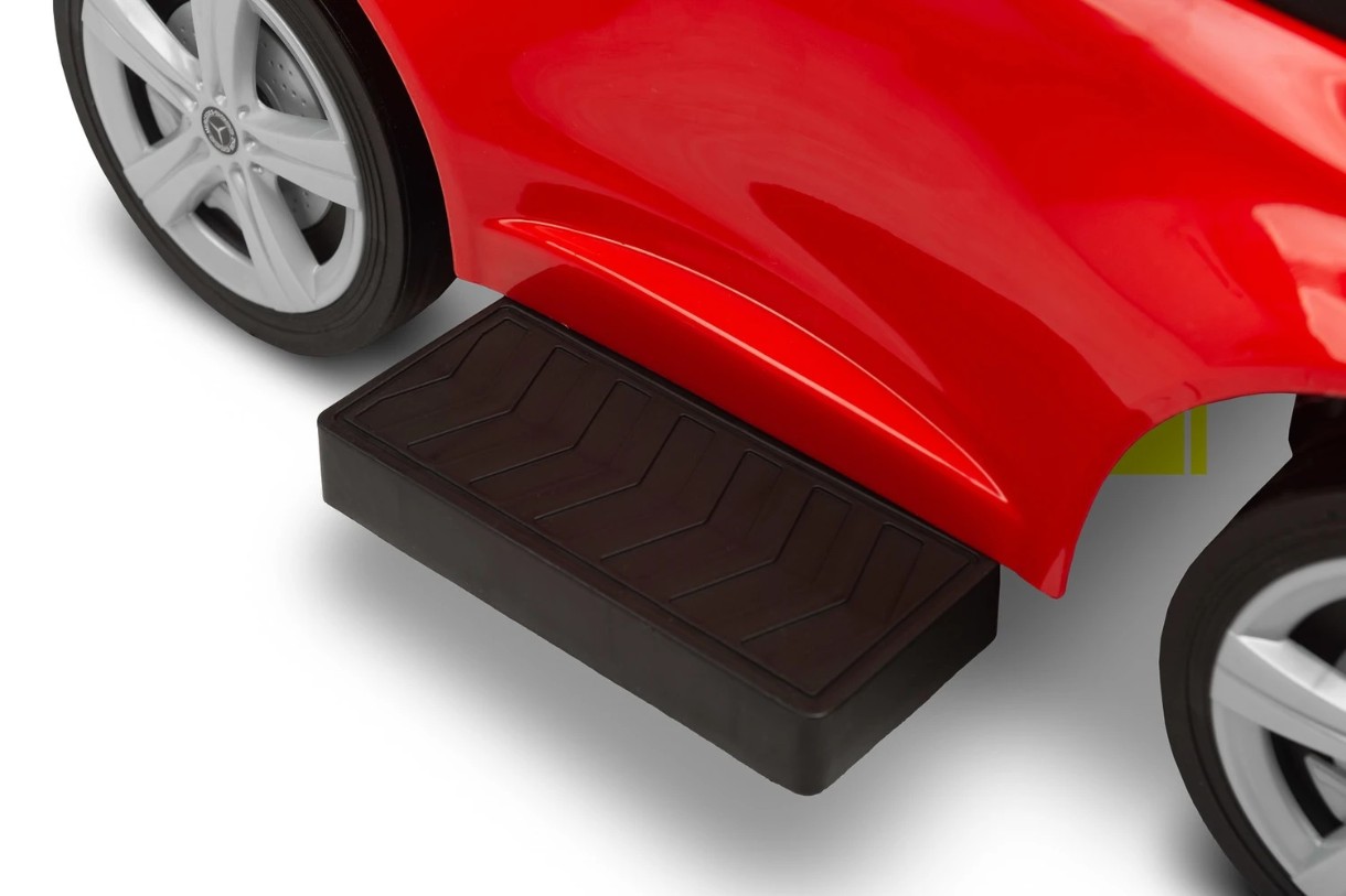 Машинка оснащена барьером с замком, который защищает малыша от выпадения, а также специальным замком в задней части, который предохраняет от опрокидывания. Реалистичные элементы дизайна, такие как логотип Mercedes и характерный внешний вид, а также интерактивный руль с мелодиями и звуковым сигналом делают катание еще более увлекательным и незабываемым.