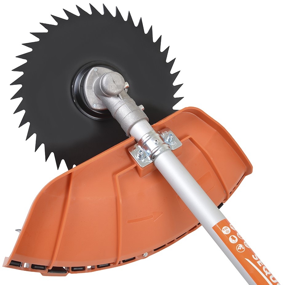 Бензиновая коса SPB5230C идеально подойдет для пользователей с небольшими и средними площадями кошения. Бензиновый 2-х тактный двигатель, мощностью 2.2 кВт, легко справится с высокой травой и сорняками, а благодаря дополнительному ножу 40Т, оператор имеет возможность косить даже очень густые заросли. Качественный редуктор с высокой теплоотдачей изготовлен из особого сплава, устойчивого к коррозии и механическим повреждениям. Долгую работу косы обеспечивает надежный двигатель, развивающий 8000 об / мин, большой маховик, охлаждающий двигатель во время работы и большой бак для топливной смеси. Сплошной металлический вал привода толщиной 10 мм, создает минимальную вибрацию. Ортопедический ремень на два плеча создает дополнительный комфорт для работы. Бесключевые крепления велосипедной рукояти.