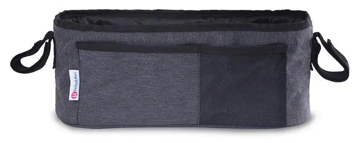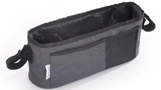 Практичный органайзер с регулируемыми ремнями для крепления к ручке коляски. Подходит для большинства колясок. Во время прогулки все необходимые предметы будут у вас под рукой.
