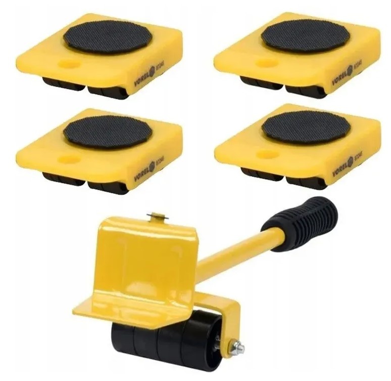 Набор для перемещения мебели Vorel VOR87245 — удобное и практичное решение для тех, кто хочет легко и безопасно передвинуть тяжёлую мебель или крупногабаритные предметы в квартире, доме или офисе. В комплект входят четыре роликовые подставки и подъёмный рычаг — с помощью рычага приподнимаете край мебели, ставите роликовую подставку под ножку, затем опускаете, и мебель уже стоит на роликах. После этого её можно плавно и без усилий переместить. Набор рассчитан на нагрузку до 150 кг, что делает его подходящим для большинства шкафов, диванов, комодов, стиральных машин и других тяжёлых предметов. Такой инструмент помогает сэкономить силы, время и защитить пол и мебель от царапин и повреждений, особенно при ремонте или переезде.