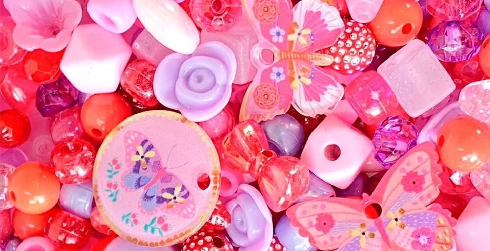 Набор из 285 акриловых бусин и 6 подвесок «Бабочка» для создания красивых украшений.