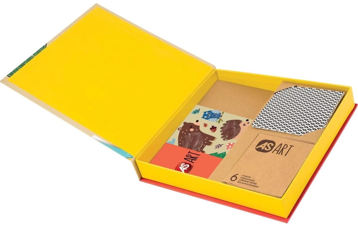Комплектация2 предварительно распечатанных конверта с предварительно распечатанными схемами рисунков,5 предварительно распечатанных изображений, 1 лист выкройки, 6 мелков