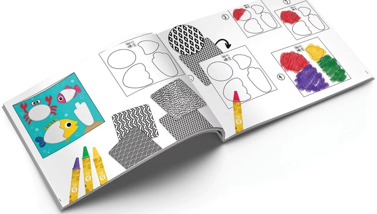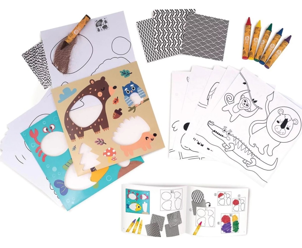 Обучающий набор для рисования, который поможет ребенку шаг за шагом научиться рисовать мелками, изображая своих любимых животных. Ребенок учится экспериментировать с цветами и фактурами, так как в набор входят рельефные узоры для использования на печатных страницах. Надавите мелками на шаблоны и создайте свои собственные эффекты на предварительно напечатанных животных или других ваших собственных рисунках.