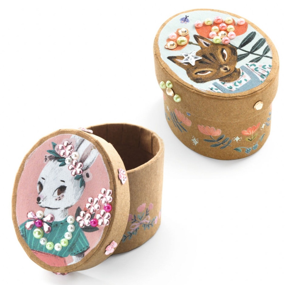 Креативный набор для создания 5 мини-шкатулок, которые можно украсить более чем 200 самоклеящимися драгоценными камнями.