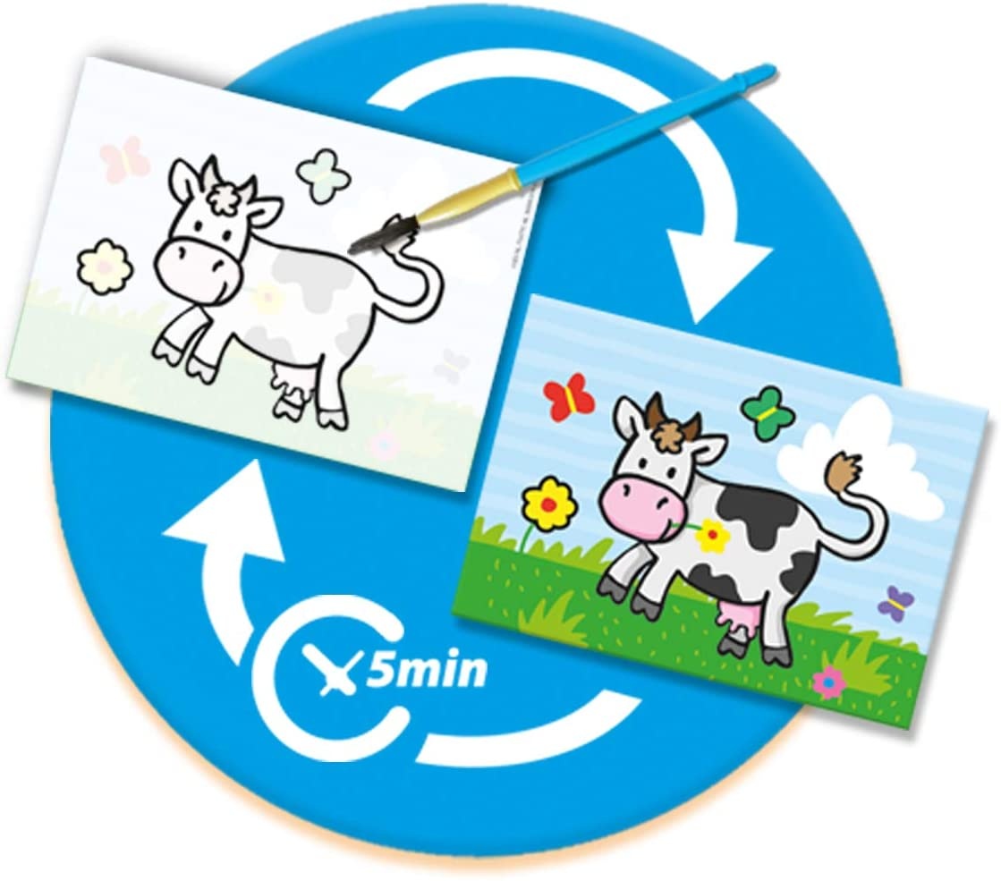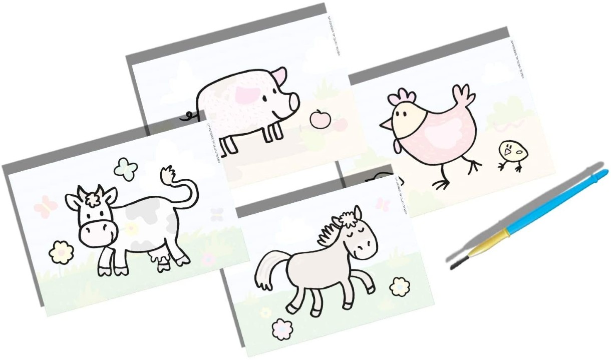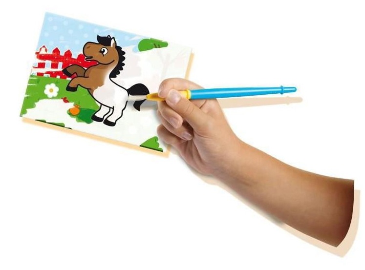 Волшебство с водой и краской без беспорядка. С этим уникальным набором от SES можно. Раскрасьте открытку влажной кистью и наблюдайте, как оживает цветная картинка. Кисть безопасна в использовании, потому что волосы не выпадают. После высыхания можно использовать повторно.