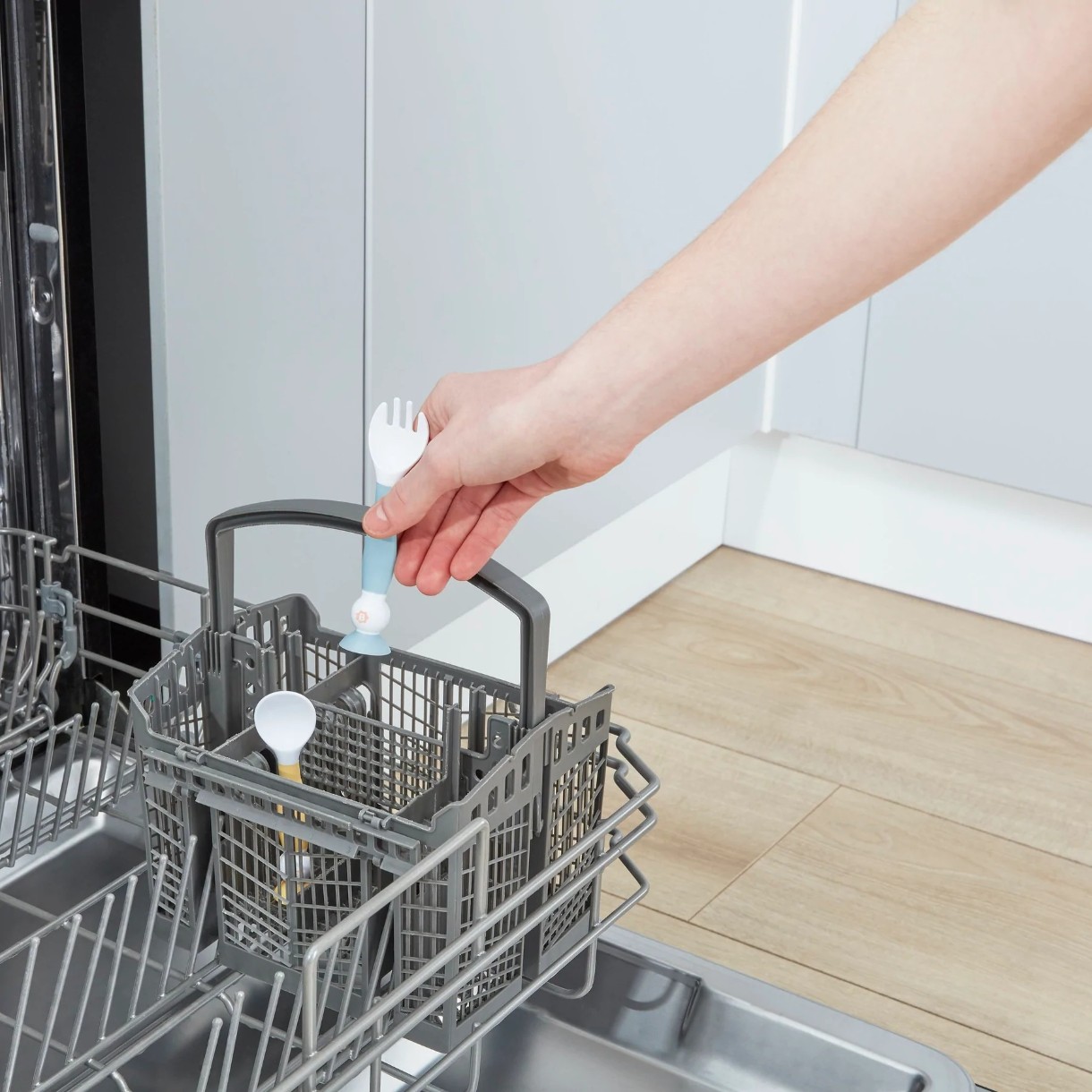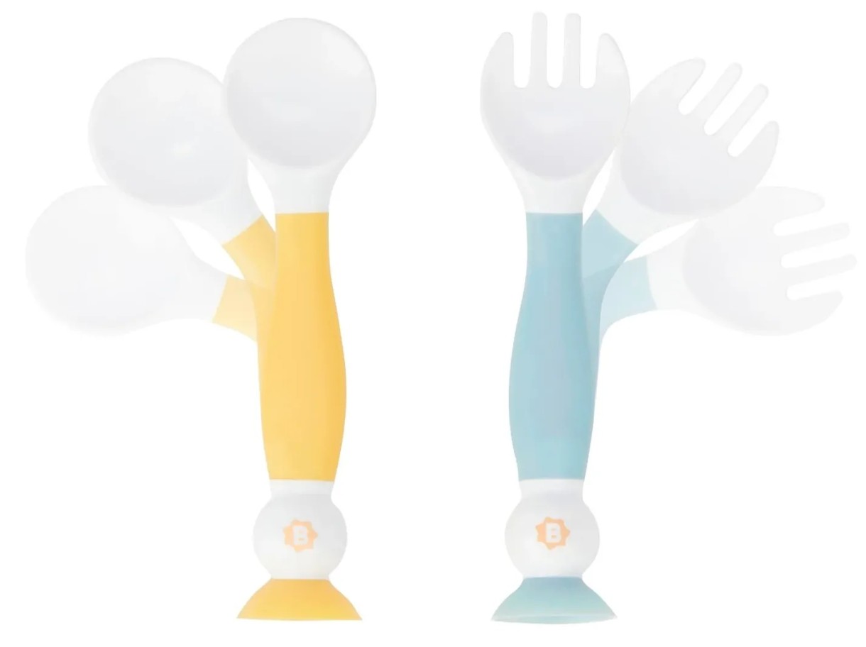 Гибкие учебные столовые приборы Badabulle состоят из ложки и вилки, которые помогут вашему малышу есть как взрослые! Они были разработаны таким образом, чтобы ваш ребенок научился схватить их и принести еду в рот естественным образом.