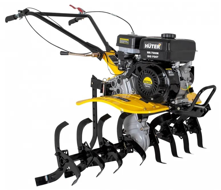 Huter MK-7000M BIG FOOT - это мотокультиватор с бензиновым двигателем мощностью 5,15 кВт. Он предназначен для обработки земли в малых и средних садах, огородах и на приусадебных участках. Мотокультиватор оснащен мощным двигателем, который позволяет легко обрабатывать грунт и выполнять различные задачи по подготовке почвы. Благодаря большому количеству фрез и широкой рабочей ширине мотокультиватор позволяет обрабатывать большую площадь земли за короткое время. Мотокультиватор также оснащен большими колесами для легкого перемещения по территории и удобного хранения.