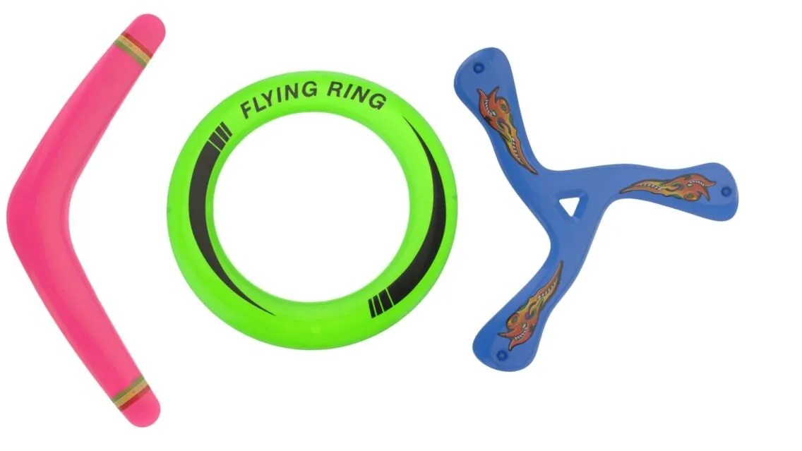 Метание - это увлекательная и веселая игра для всей семьи. Игра развивает ловкость и координацию. Отличная вещь для тренировки ловкости рук и быстроты реакции. Метание бумеранга - замечательный досуг на природе Изготовленный из прочного безопасного пластика, непременно понравится вашему ребенку. Летающий набор станет незаменимым атрибутом летнего отдыха, который позволит весело провести время.