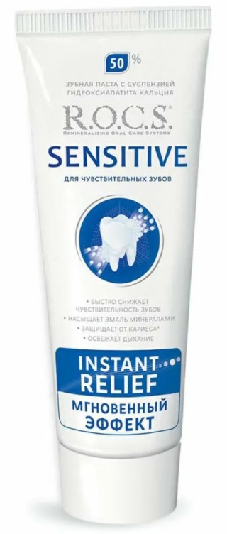 Новая зубная паста R.O.C.S. SENSITIVE «Мгновенный Эффект» разработана научной российско-швейцарской лабораторией WDS специально для повышения белизны и улучшения внешнего вида гиперчувствительных зубов.