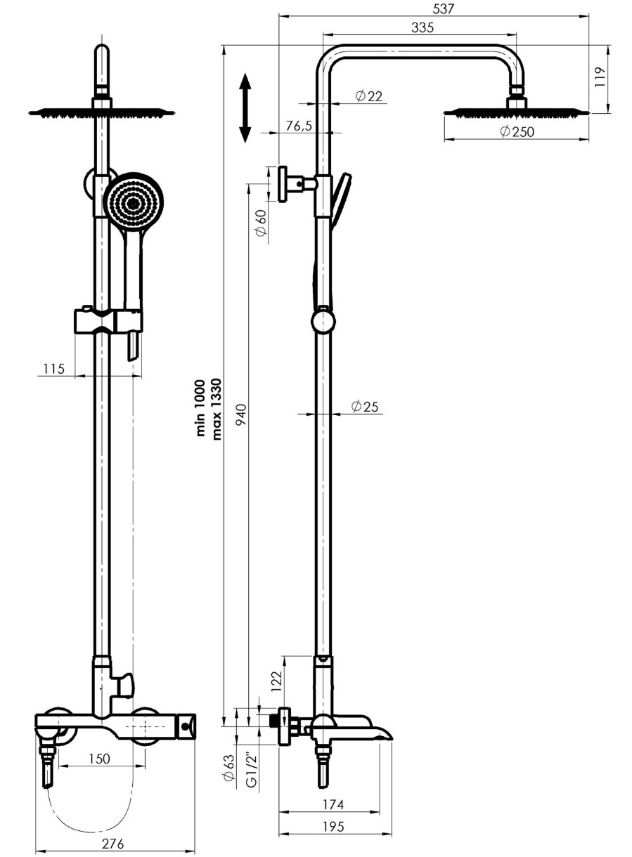 Душевой набор Rubineta Olo+Ultra-10 SW (625125)