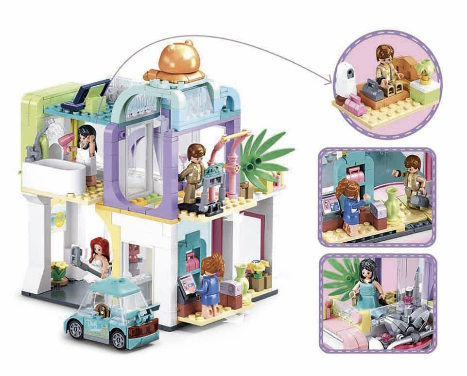 Конструктор Sluban «Отель «Корона» серии «Мегаполис» познакомит ребенка с важной частью городской инфраструктуры. Гости останавливаются в отеле, чтобы познакомиться с достопримечательностями города, отдохнуть или наоборот — решить важные дела. А еще в отелях часто проводят различные мероприятия. В двухэтажном отеле есть удобный подъезд для автомобилей, стойка регистрации, уютный номер и балкон, с которого можно полюбоваться видом на город. Дети смогут придумать и разыграть множество ситуаций, связанных с работой большого отеля.