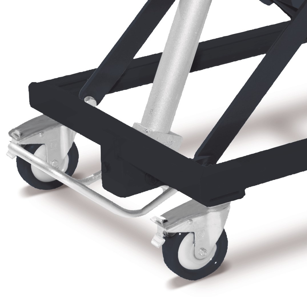 — Благодаря четырем роликам шасси, два из которые имеют блокирующий тормоз, обеспечивается легкая маневренность рабочего стола и фиксация в нужной позиции.