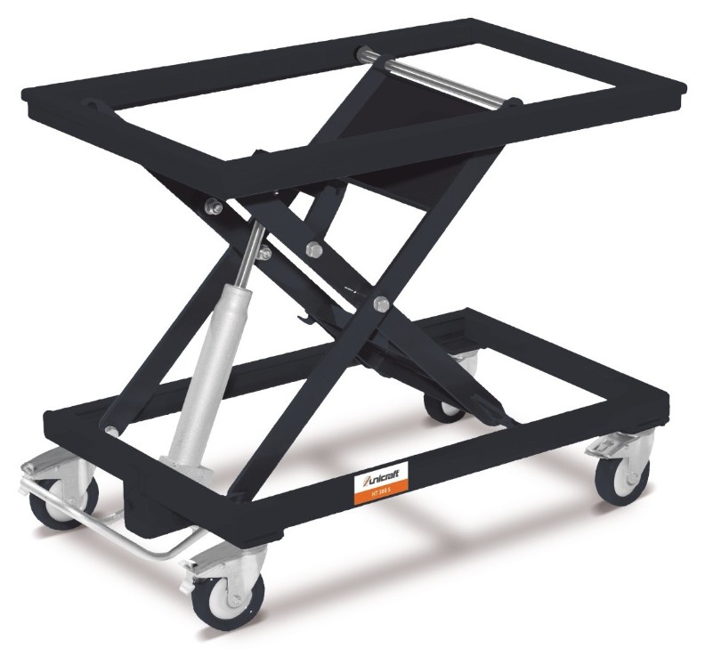 — Подъемный рабочий стол Unicraft HT 300 S оснащен мобильным шасси и гидравлическим подъемным механизмом ножничного типа.
