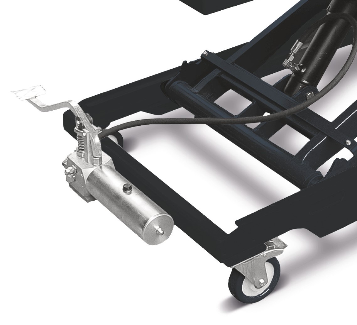 — Регулировка стола на желаемую рабочую высоту выполняется простым нажатием ножного гидравлического рычага — мягкое поднятие и встречное движение.