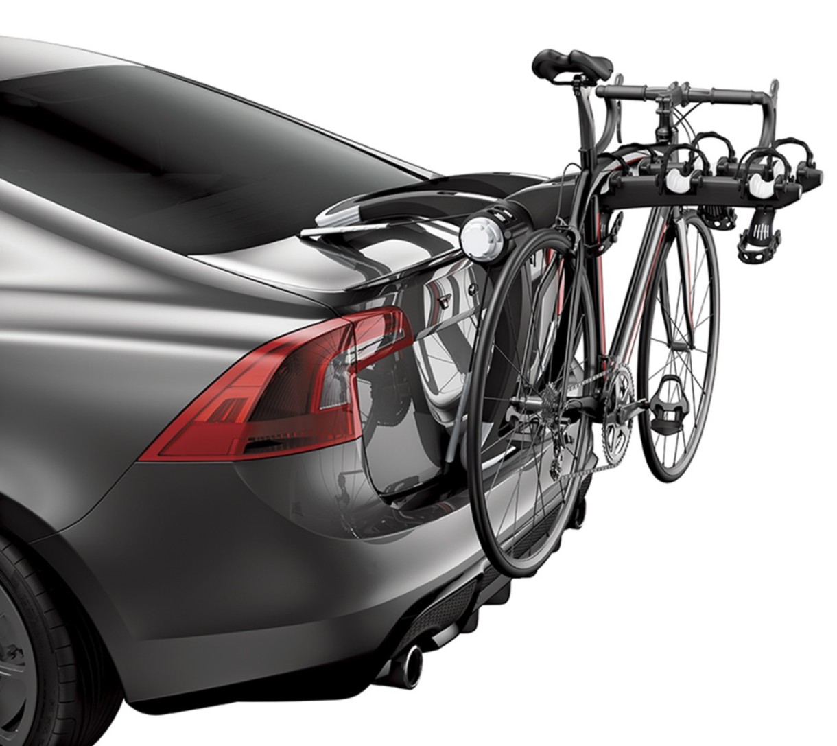 Фиксируйте велосипеды на креплении, а само крепление — на автомобиле (замки входят в комплект)