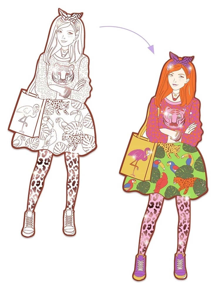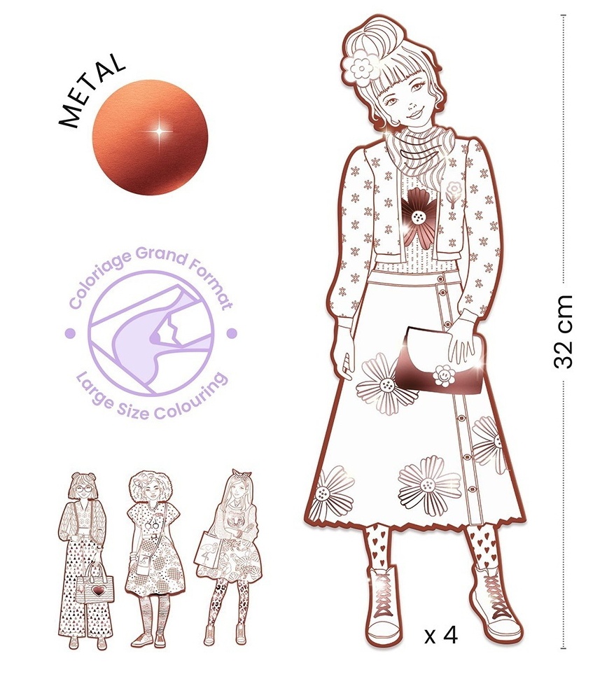 Четыре больших контура высотой 32 см дают достаточно места для раскрытия творчества и цвета в каждом наряде.