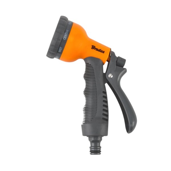 Распылитель Bradas GL7202 — поливальный пистолет из высококачественного ABS-пластика с адаптером для подключения к шлангу через стандартный коннектор. Он позволяет выполнять полив в восьми режимах — от концентрированной струи до тонкого распыления, обеспечивая гибкость и точность при уходе за растениями. Функция непрерывной подачи воды позволяет зафиксировать струю без постоянного нажатия на курок, что делает процесс полива более удобным и экономичным. Лёгкий и прочный, этот распылитель идеально подходит для сада, огорода, клумб и газонов, а также для других бытовых задач, связанных с водой.